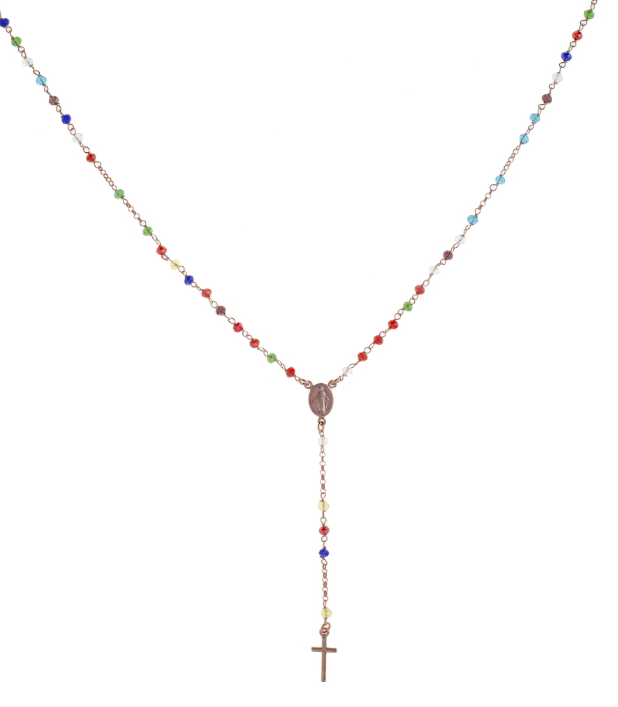 Collana rosario pendente Prega&Ama in argento925 con pietre multicolor - ROSE' - (Lung. 50 + 9 cm)