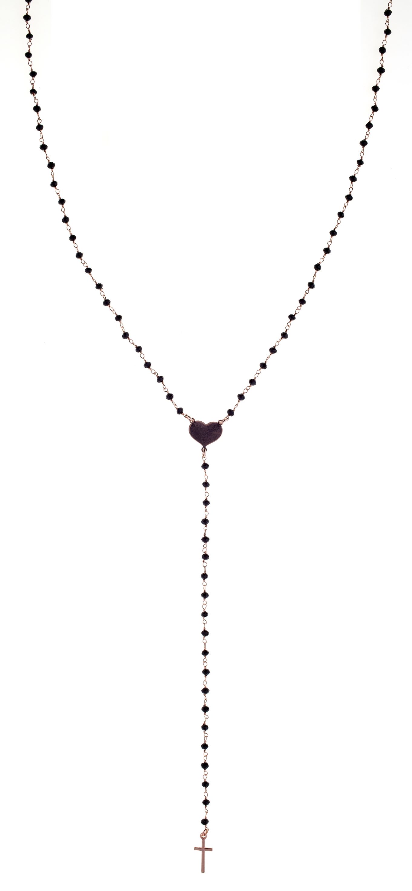 Collana rosario pendente in argento925 Prega & Ama con pietre nere - ROSE' - (Lung. 46 + 5 cm pendente 18 cm)