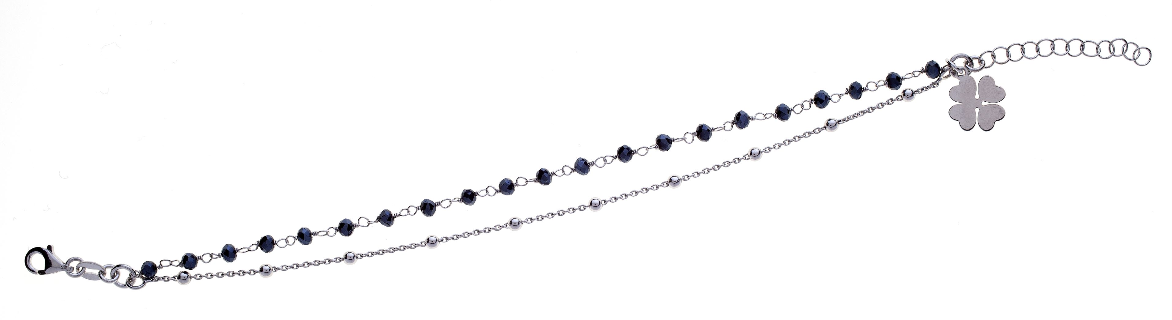 Bracciale rosario 2 fili pendente Prega&Ama in argento925 con pietre petrolio -RODIO -  (Lung. 18 + 3 cm)