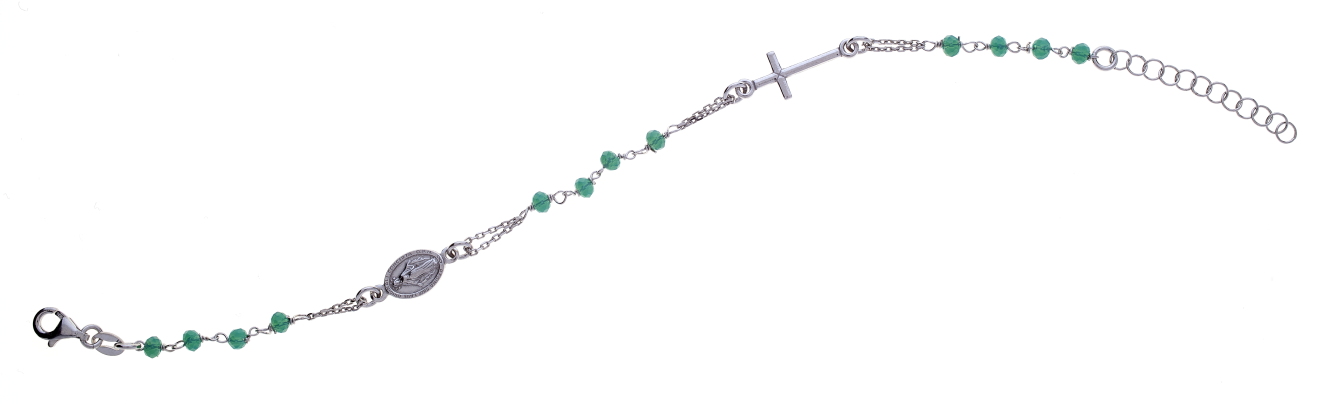 Bracciale rosario pendente Prega&Ama in argento925 con pietre verdi