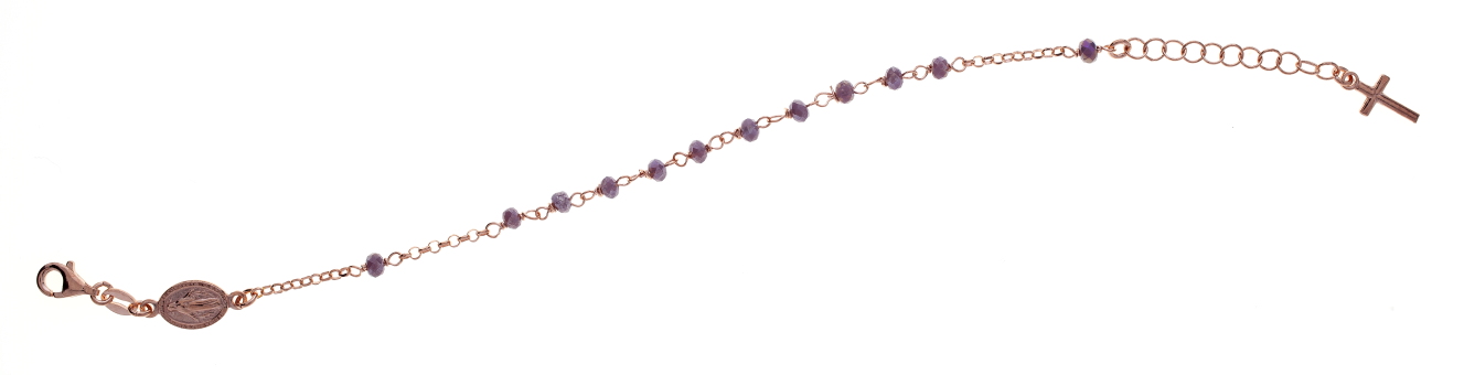 Bracciale rosario pendente Prega&Ama in argento925 con pietre lilla - ROSE'- (Lung. 19 + 5 cm)
